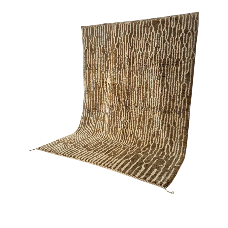 Originaire des régions montagneuses du Maroc plutôt propices au froid et à la neige, c’est pourquoi c’est un tapis très dense, chaud et confortable.Le Mrirt fait partie de ces tapis berbères avec une laine fine et soyeuse, avec son style simple et sa qualité de confection irréprochable.