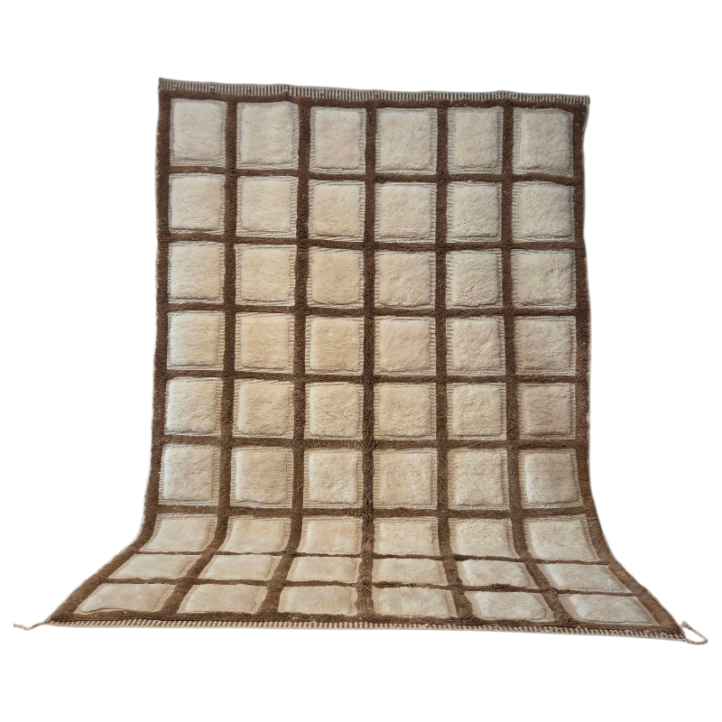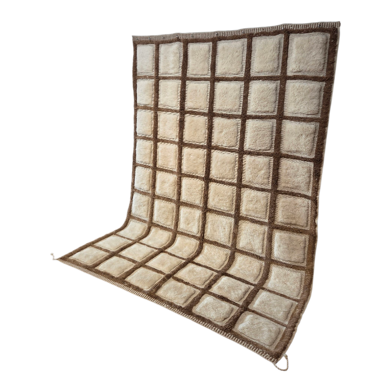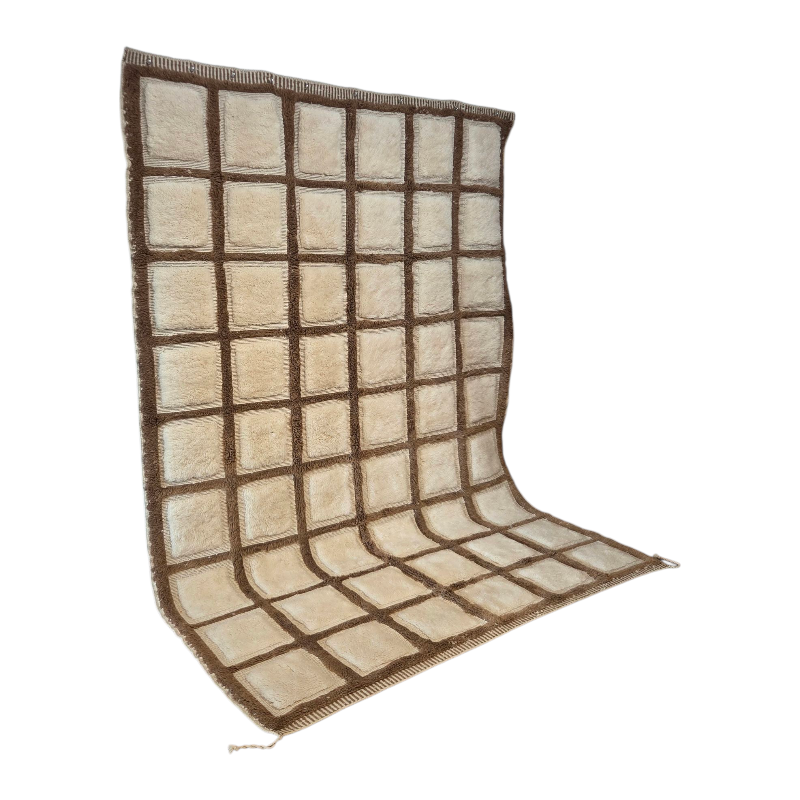 Originaire des régions montagneuses du Maroc plutôt propices au froid et à la neige, c’est pourquoi c’est un tapis très dense, chaud et confortable.Le Mrirt fait partie de ces tapis berbères avec une laine fine et soyeuse, avec son style simple et sa qualité de confection irréprochable.
