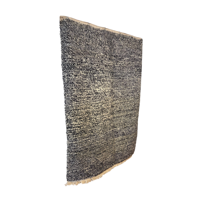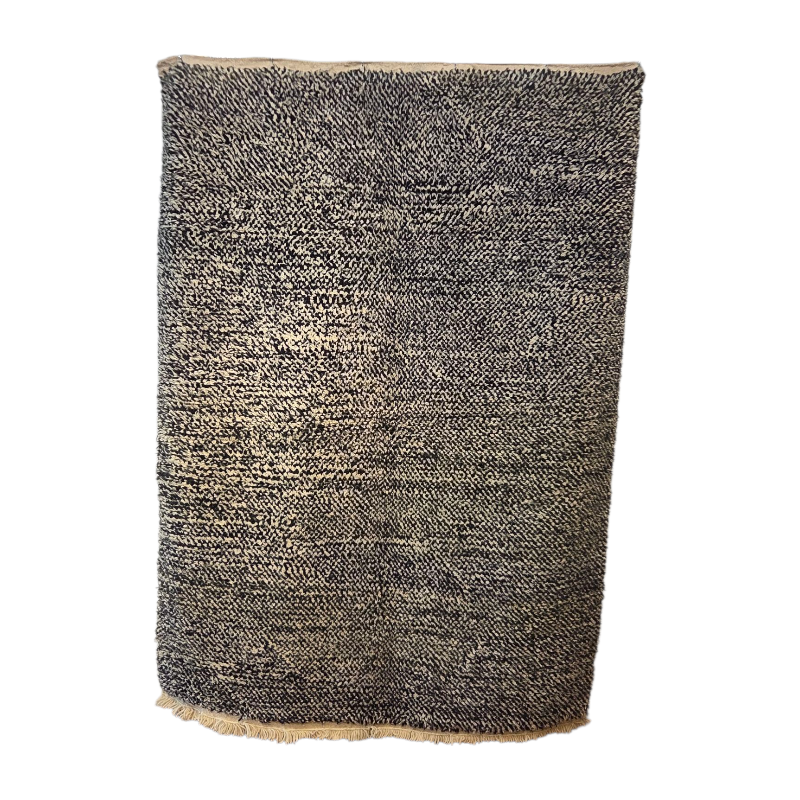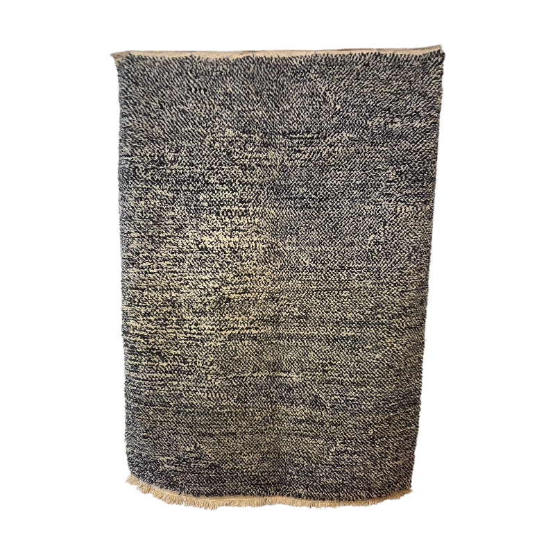 Le tapis Beni Ouarain est sans doute le plus connu des tapis berbères, originaire des régions montagneuses du Moyen-Atlas au Maroc par les tribus Aït Ouaraïn.Il est aujourd’hui très prisé pour le style épuré et minimaliste qu’il offre et par son esthétique et le confort qu’il procure. Tissés à la main dans une laine naturelle douce et épaisse, ils se distinguent par leurs grandes tailles, des motifs géométriques en forme de losange et un style minimaliste.Réalisé artisanalement sur un métier à tisser, ce qui demande un temps de confection très long qui peut aller de plusieurs jours à plusieurs mois en fonction de sa taille.