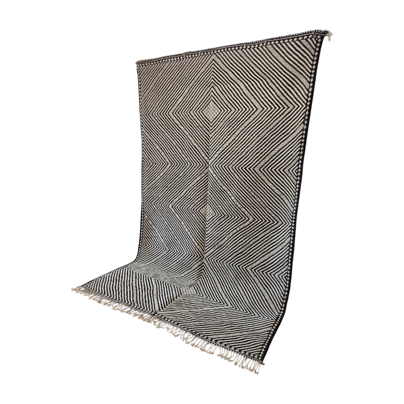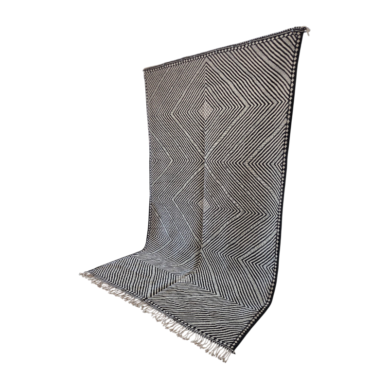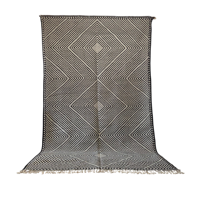 Ces tapis berbères tissés à la main 100% en laine, reprennent les dessins et graphismes des célèbres tapis Beni Ouarain, mais avec un tissage spécifique qui se rapproche de celui des tapis Kilim.