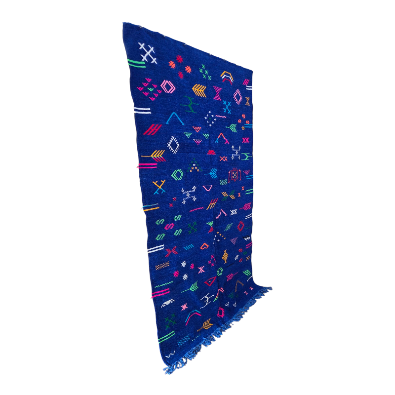 Ces tapis berbères tissés à la main 100% en laine, reprennent les dessins et graphismes des célèbres tapis Beni Ouarain, mais avec un tissage spécifique qui se rapproche de celui des tapis Kilim.